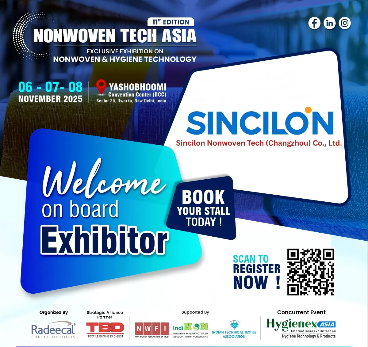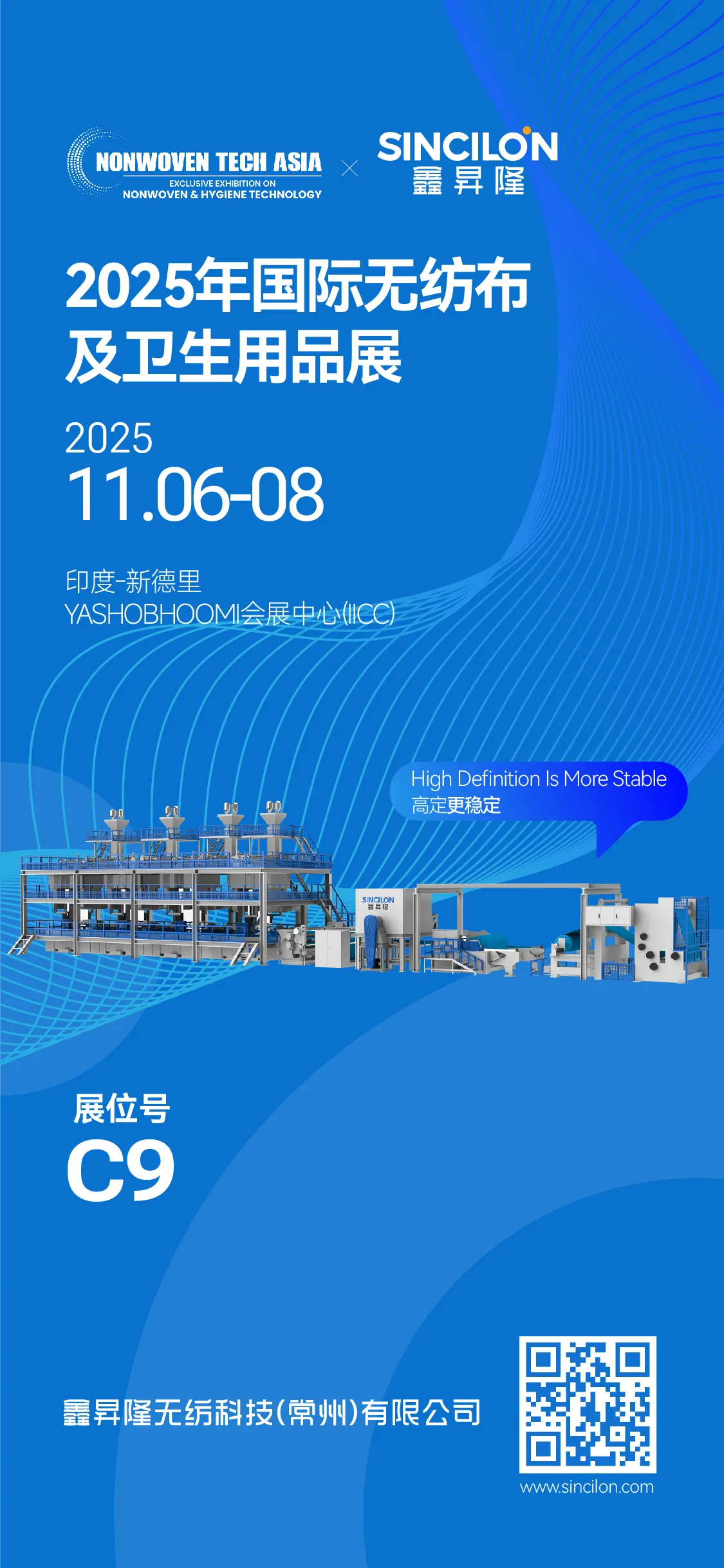 2025年11月6日至11月8日,鑫昇隆公司将参加印度国际无纺布及卫生用品展,即亚洲国际无纺布和技术展,热忱邀请广大朋友参观交流。
